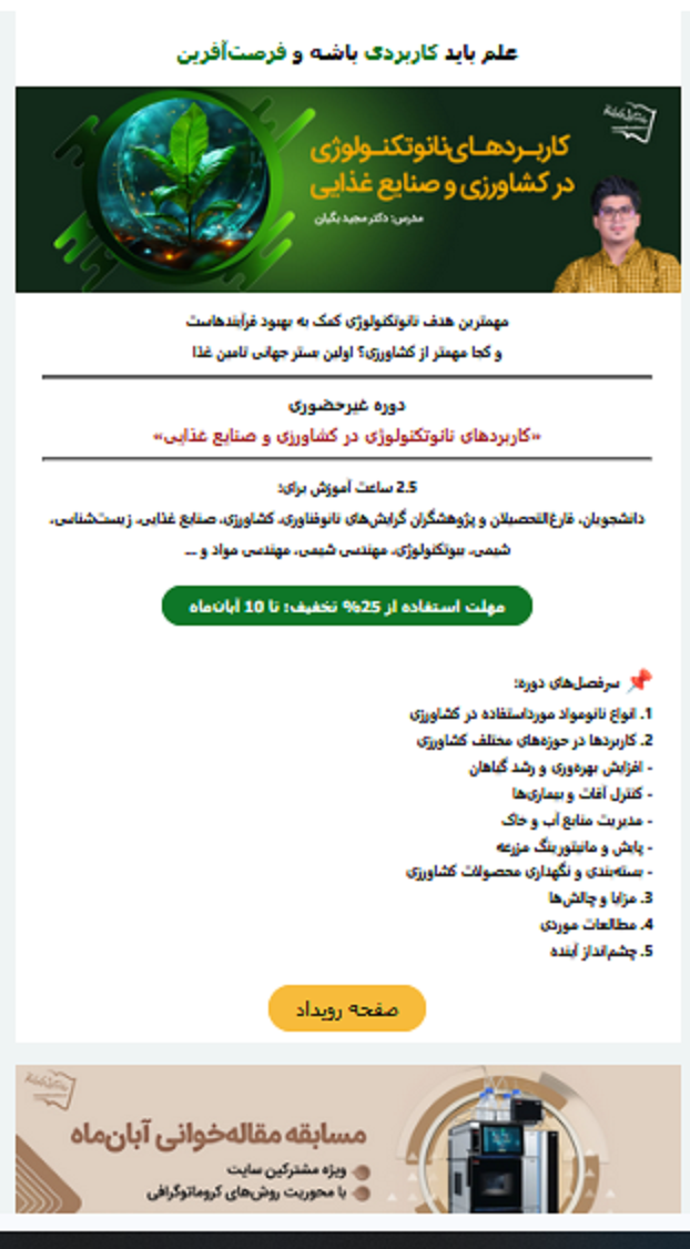 Alexandria Engineering Journal(2023)رضا نوبخت حسنلویی,^منصور جهانگیری*,المز داوی,فهیمه وفایی,مسعود صلواتی نیاسری